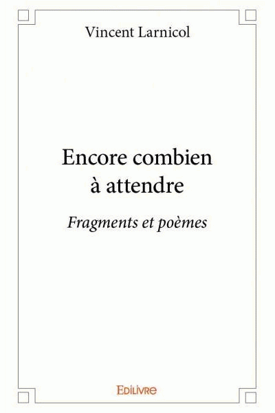 « Encore combien à attendre, combien à attendre, combien à attendre... » disait Noir Désir... Oui, encore combien à attendre du talent du grand Vincent ? En première partie, l'auteur partage des textes et fragments faits essentiellement pour des concours, mais qui n'ont pas été pris d'assaut par les jurys... Et en deuxième partie, vous trouverez quelques poèmes faits à ses heures perdues... L'auteur vous laisse découvrir ses derniers instants volés, car maintenant, il va falloir qu'il passe aux choses sérieuses...