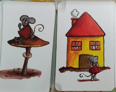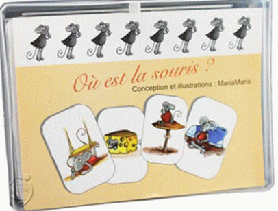 « Où est la souris ? » est composé de 2 jeux identiques de 30 cartes et 4 jokers. Dans chaque jeu on trouve 5 positions de la souris par rapport à un objet.